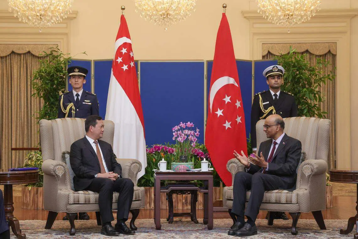 On the first day of his visit, Hun Manet received a ceremonial welcome at the Istana and called on President Tharman Shanmugaratnam.